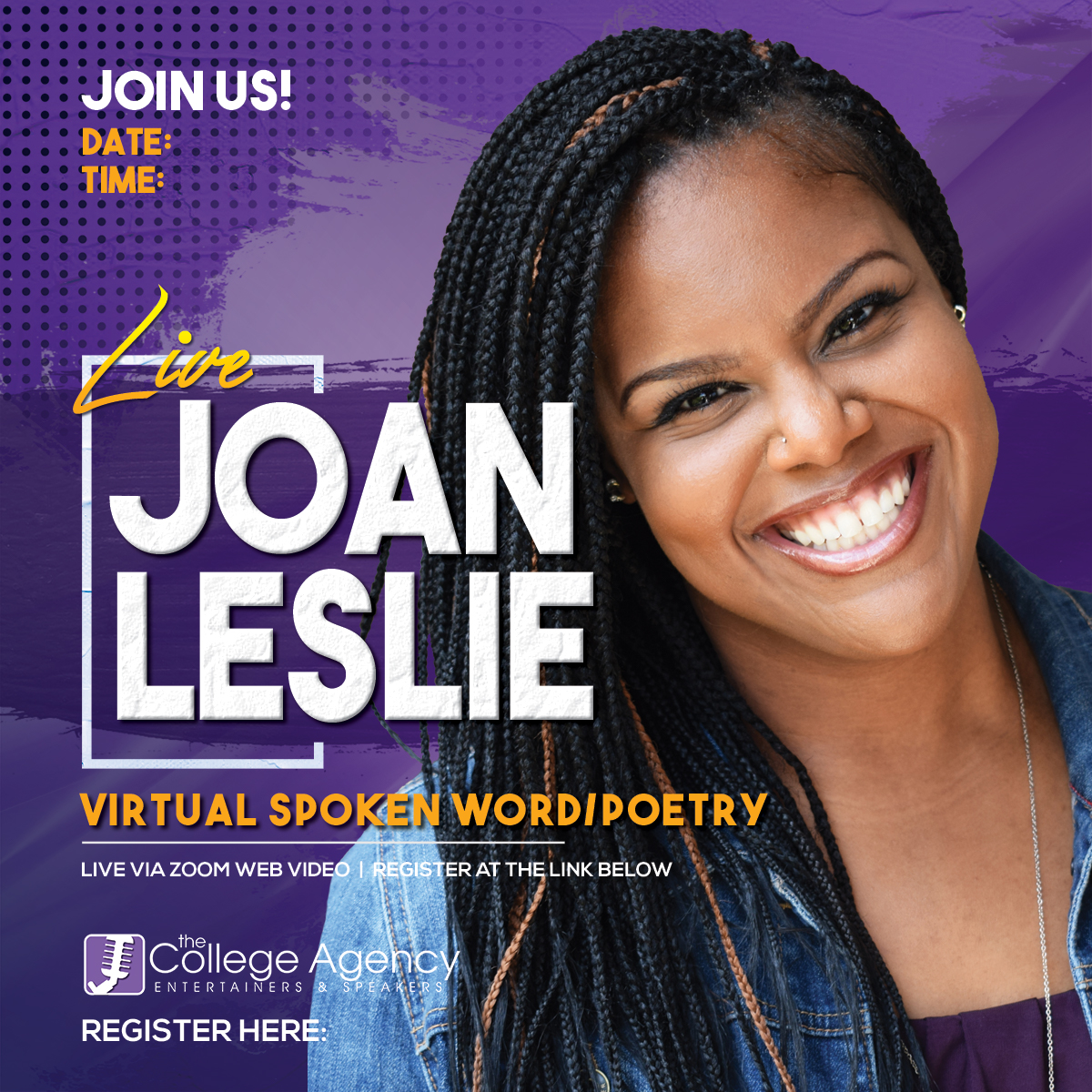 Joan ‘Lyric’ Leslie is an author, a slam poet, a back-to-back Queen of the South Poetry Slam Champion and story-teller whose work journeys through self-discovery and self-love while incorporating a fair share of humor and wit. She uses poetry to call a spade a spade and to challenge systemic injustice. Her book ‘My Blackness Rhymes with Joy’ highlights experiences with love, healing, justice and the reclamation of black joy through it all.