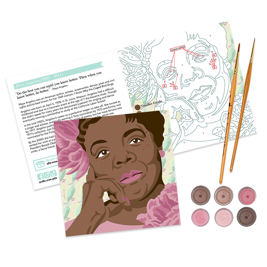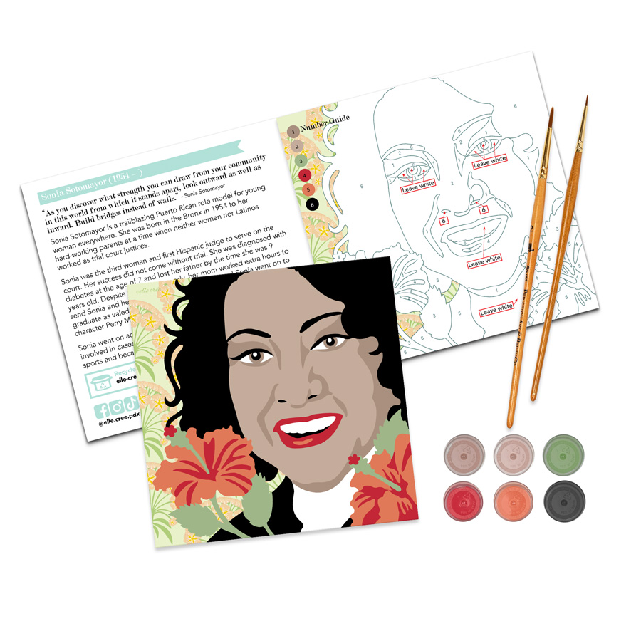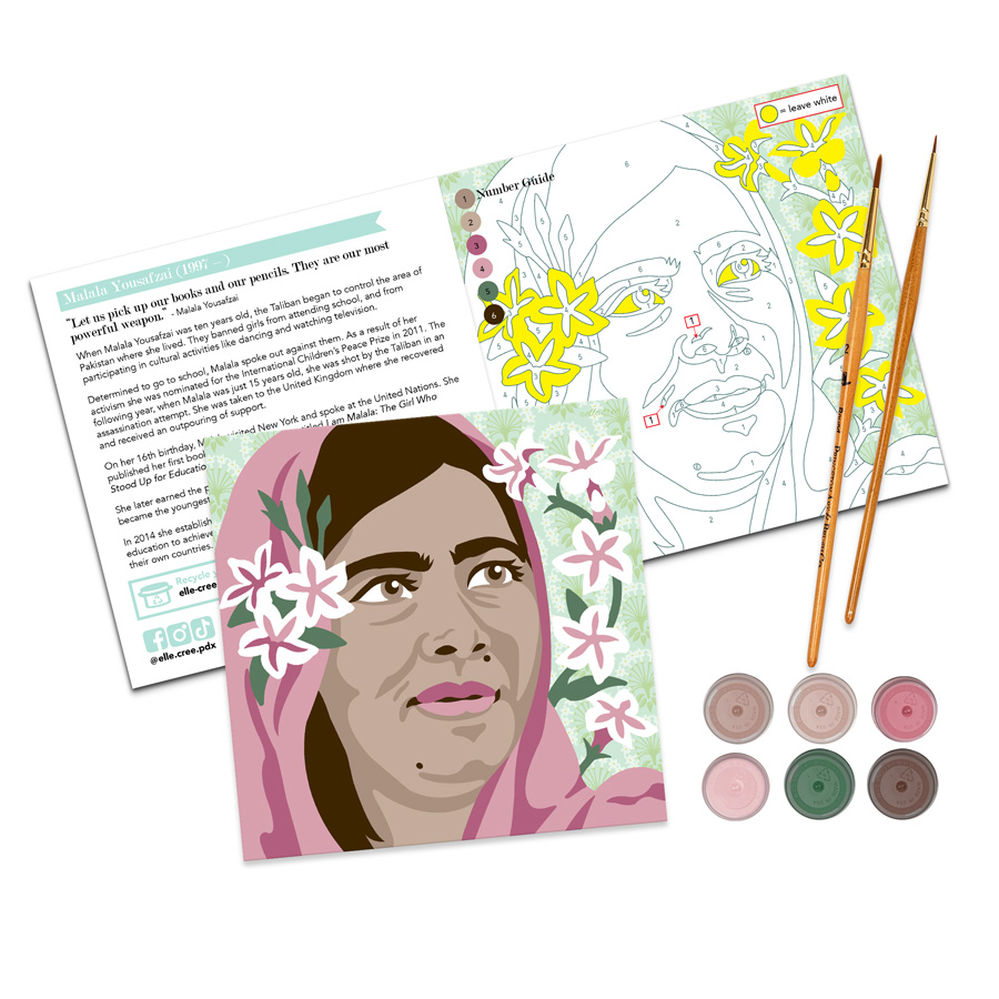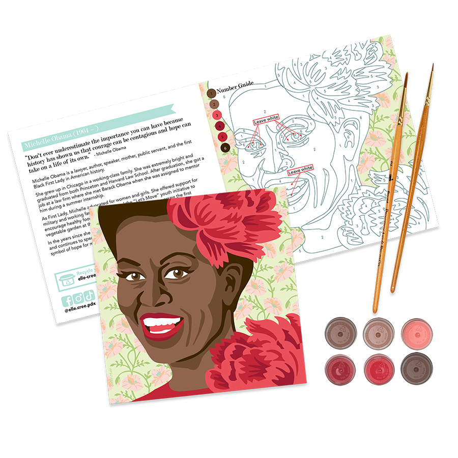 Celebrate Womens History Month in a unique way by painting these incredible female icons! Painting-by-number causes us to slow down and engage in a creative activity that contributes to a sense of calm. When you’re focusing on your steady hand and paint application, your mind can’t swirl with the busyness of the rest of life. Pick up a paint brush and let your worries melt away. Everyone knows how to paint because we’ve been doing it since kindergarten! Paint-by-number is an easy and fun way to unleash your inner artist without the pressure of having to start with a blank canvas. The great thing about paint-by-number is that you get to be creative without having to make any decisions. The color palette is all laid out for you. All you have to do is concentrate on your brush strokes and your steady hand.